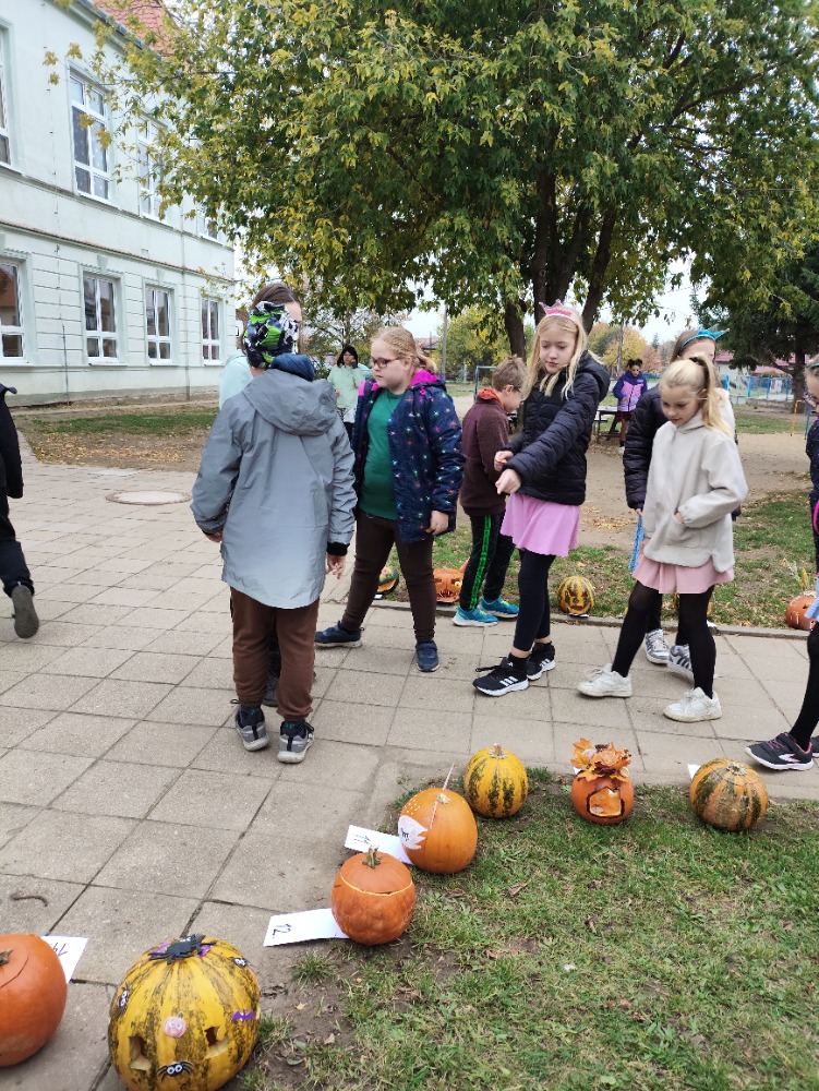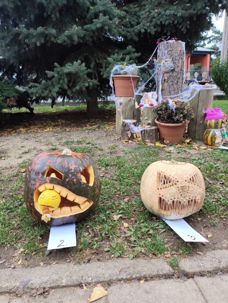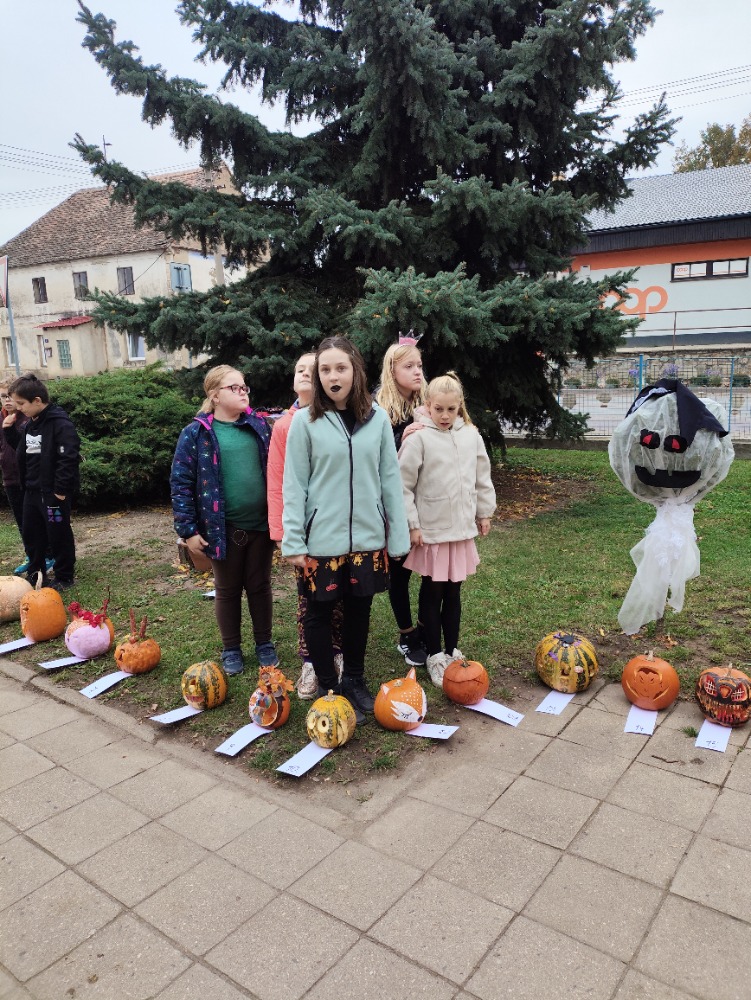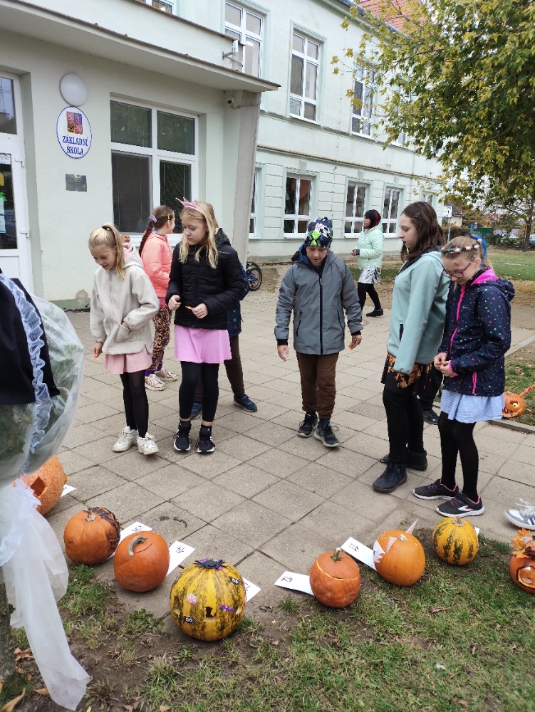 Ve škole jsme si užili strašidelně zábavné dopoledne! Některé děti si přinesly krásně vyřezané či nápadité dýně, které jsme společně obdivovali a hodnotili.